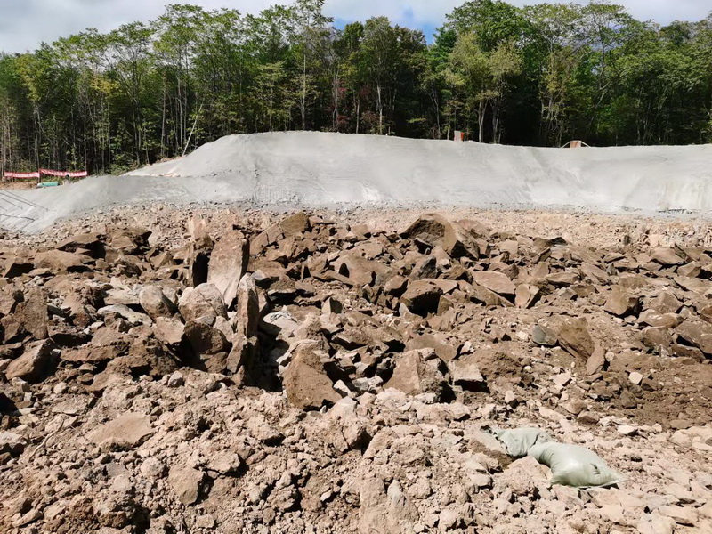 本次爆破共使用炸药2064公斤,雷管200发。爆破振动动和其他爆破有害效应均控制在设计允许范围以内;经爆破后检查,爆破未对周围临近建筑设施造成任何影响,爆破取得了圆满成功。