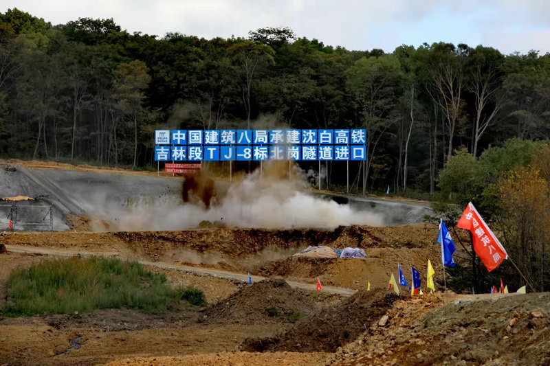 新建沈白高铁TJ-8标段路堑首次爆破圆满成功